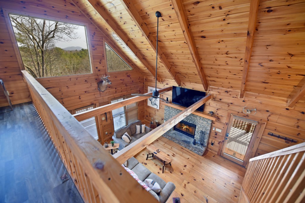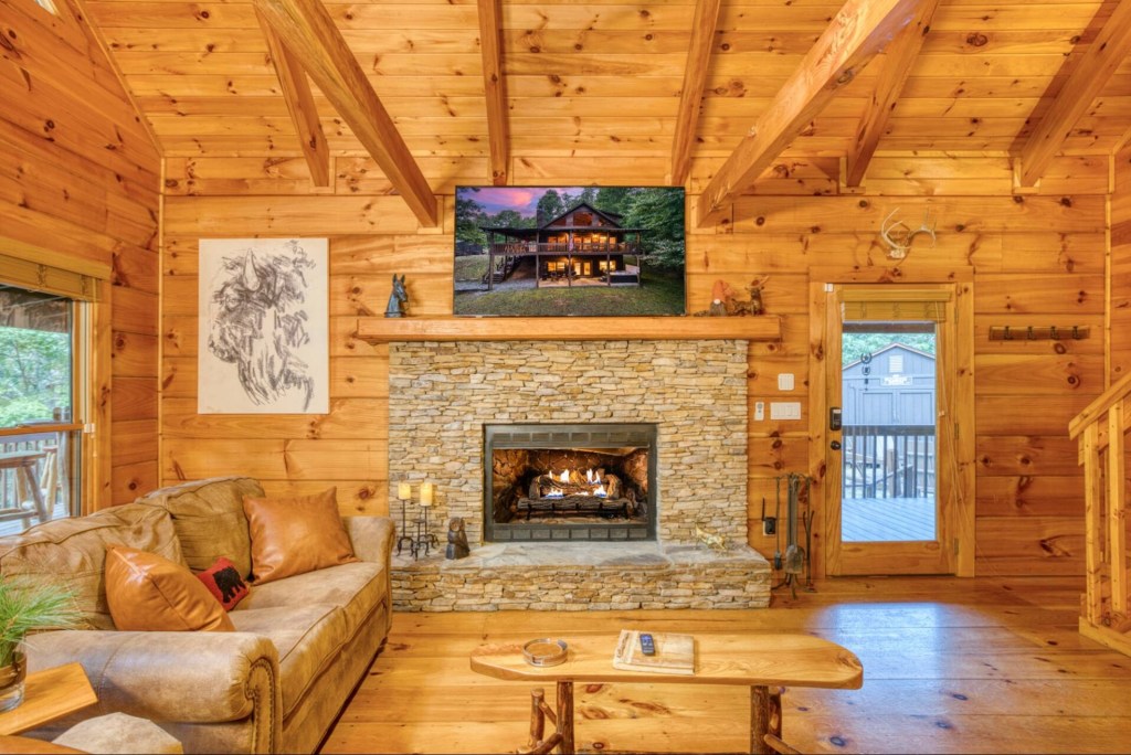 Nestled on seven acres of serene landscape in the heart of the North Georgia Mountains, The Bucking Bison offers an unparalleled retreat for those seeking a blend of modern comfort and rustic charm. This unique cabin, centrally located near the Toccoa River, is designed to provide an authentic and unforgettable experience.
